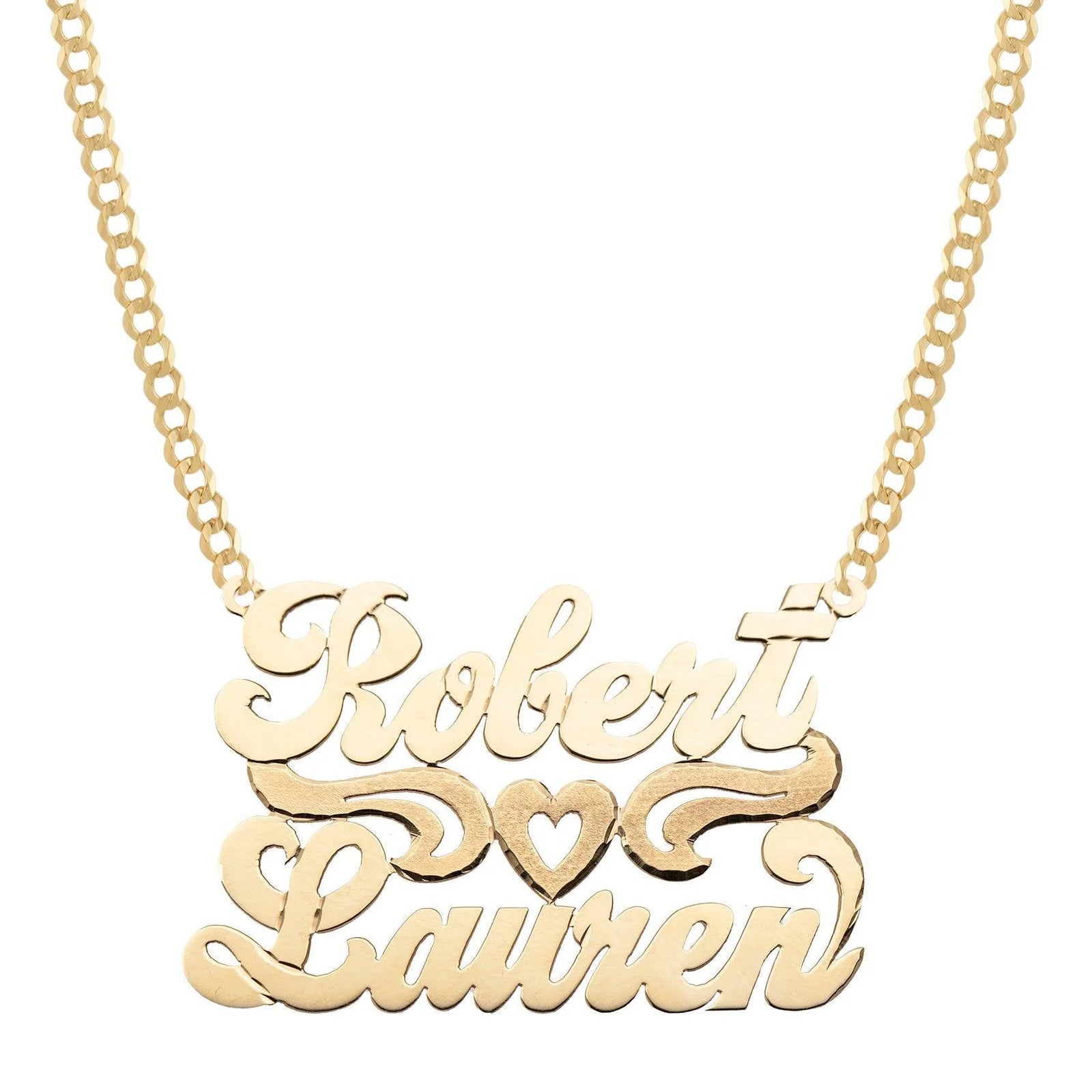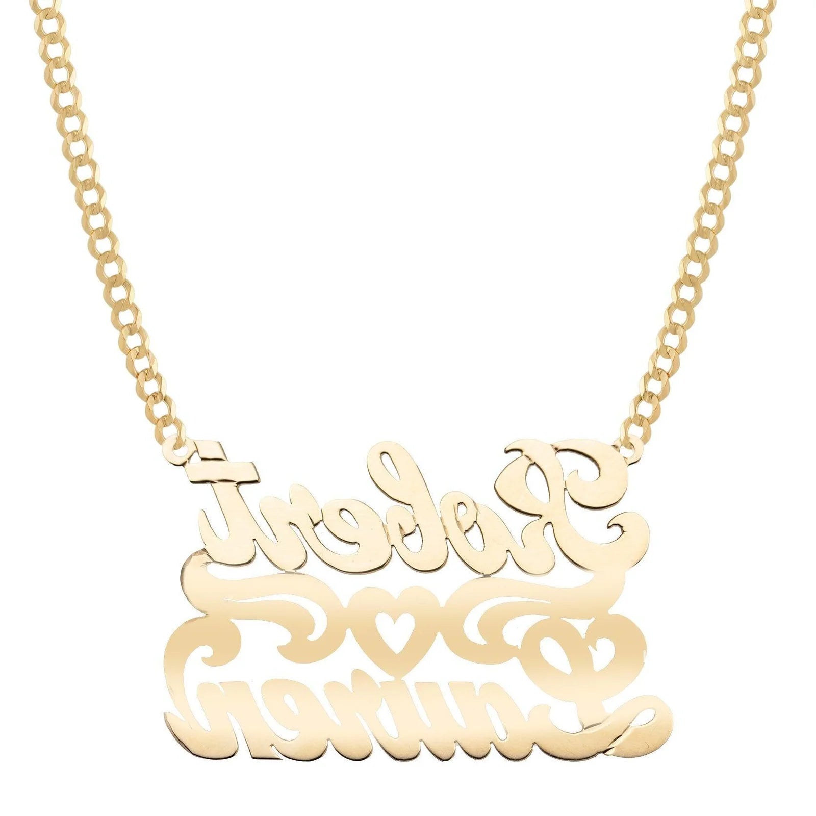 Ladies Script Name Plate Heart Ribbon Necklace 14K Gold
